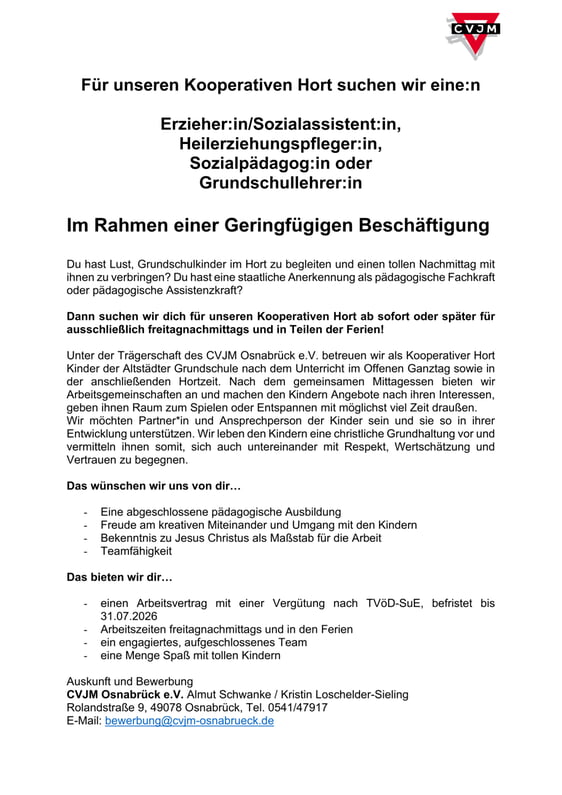 Bei Interesse wende Dich gern an info@cvjm-osnabrueck.de